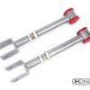 The front suspension from the factory allows zero camber adjust-ability which can become a problem especially when lowering your car. Race enthusiasts also wish to add more negative camber to increase their handling without having to “slam” their car to achieve the desired camber. These arms will allow 1.5 degrees of positive camber, and .5 degrees of negative camber from the factory settings. So if your car is lowered 1.5″ and the front camber is sitting at 2 degrees negative camber, these arms will allow you to bring them back out to .5 degrees negative camber.