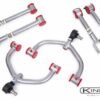 The front suspension from the factory allows zero camber adjust-ability which can become a problem especially when lowering your car. Race enthusiasts also wish to add more negative camber to increase their handling without having to “slam” their car to achieve the desired camber. These arms will allow 1.5 degrees of positive camber, and .5 degrees of negative camber from the factory settings. So if your car is lowered 1.5″ and the front camber is sitting at 2 degrees negative camber, these arms will allow you to bring them back out to .5 degrees negative camber.