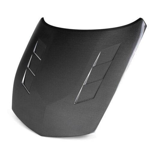 In addition to its visual appeal, the carbon fiber construction of the Seibon TS-Style Hood offers weight reduction compared to the stock hood. This reduction in weight can contribute to improved performance and handling by reducing the vehicle’s overall mass.