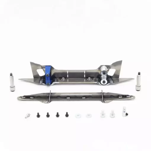 By modifying the front subframe with supplied hardware the seering rack will be moved forward to improve Ackermann curve and eliminate the need for rack offset spacers which means more rigid and precise handling.